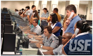 No dia 21 de dezembro, os alunos do curso de especialização em Políticas Públicas, Diversidade e Inclusão Social do Campus São Paulo encerraram as atividades do semestre letivo com uma visita ao COPOM (Centro de Operações da Polícia Militar do Estado de São Paulo). A visita, organizada pelo professor Erik Hoel Colla, possibilitou que o corpo discente conhecesse um dos maiores e mais importantes centros de atendimento de emergências do mundo. No total, os números de atendimentos do COPOM de São Paulo chegam à marca de 30 mil chamados diariamente.